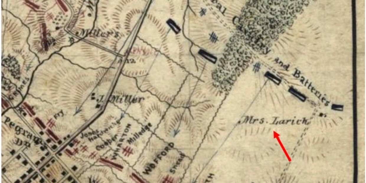 Thorndale appears on both Confederate and Union maps of the battle. Identifying Thorndale depends on when the map was drafted and which army drafted it. For example, on Confederate Major Jed Hotchkiss’s Sketch of the Battle of Bell Grove or Cedar Creek, Wednesday, October 19, 1864, the location of Thorndale is indicated by the name “Mrs. Larrick.”